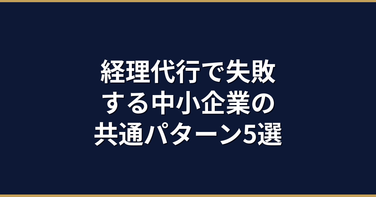 「頼んだのに、毎月自分が確認しないと進まない」「最初の見積もりより費用が倍になった」「担当者が変わるたびに、同じ説明を繰り返している」 経理代行を導入した中小企業から、こういった声を聞くことがある。 失敗した後、多くの経営者は「委託先が悪かった」という結論に至る。確かに依頼先の質が原因のこともある。ただ、実際の経緯を整理すると、問題の大半は契約前の確認不足や、依頼の仕方にある。 この記事では、中小企業が経理代行で繰り返しがちな失敗パターンを5つ整理し、それぞれの対策を具体的に書く。 パターン1: 月額は安 ...